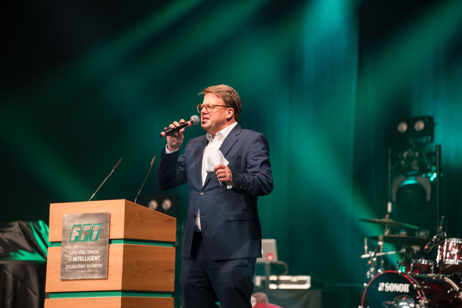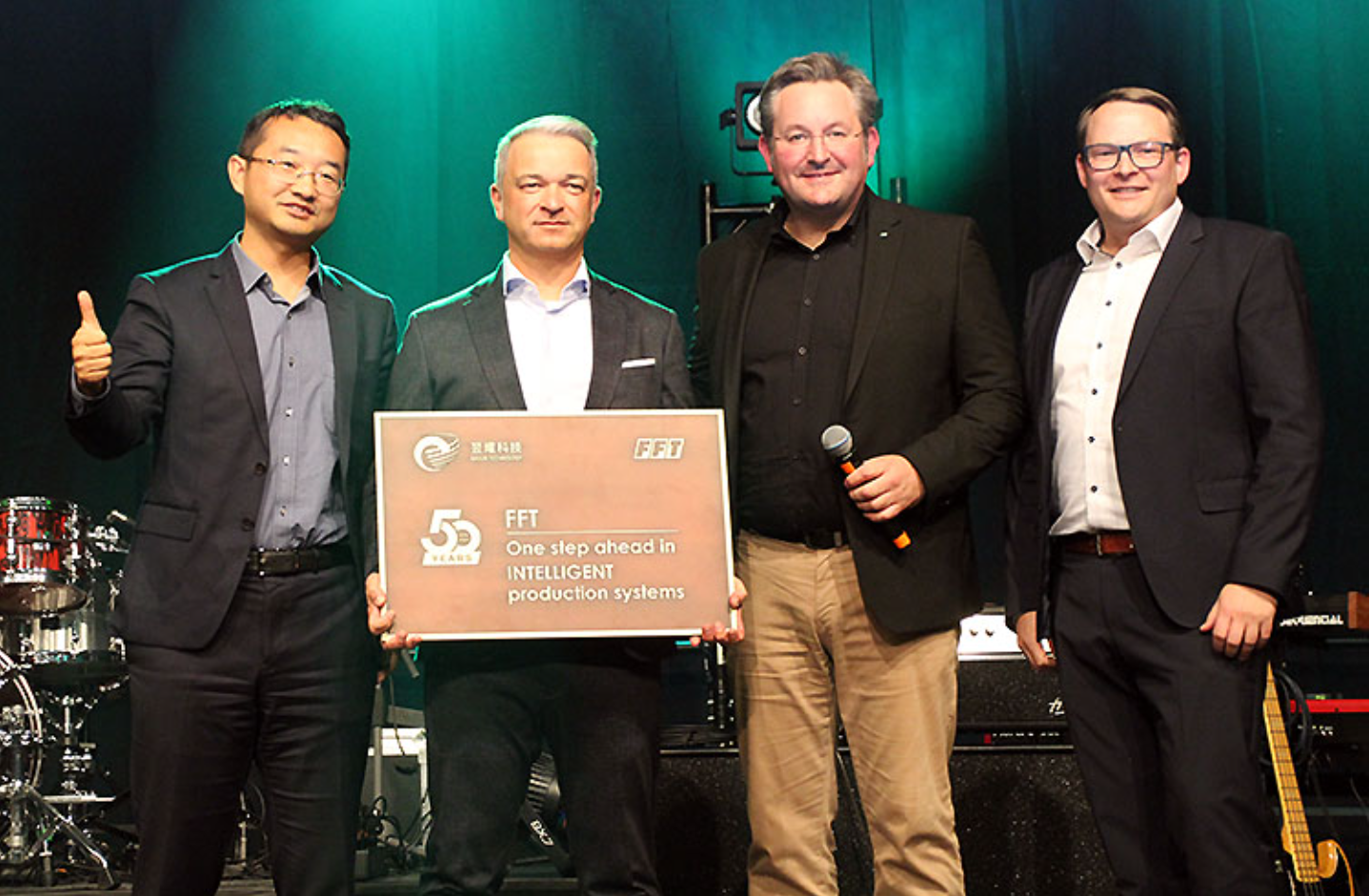 為慶祝翌耀科技旗下FFT Produktionssysteme(以下簡稱FFT)成立50周年,公司于11月8日在德國總部Fulda隆重舉辦了盛大的周年慶典活動。當天,來自業(yè)務(wù)合作伙伴、國際分支機構(gòu),員工及其家屬在內(nèi)的1700余名嘉賓歡聚一堂,在Fulda共同度過了一個意義非凡的“綠色之夜”,共同慶祝FFT成立50周年這一里程碑時刻。