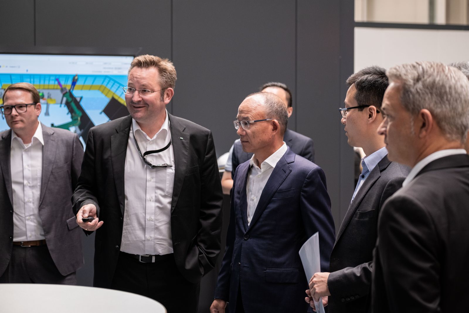 2022年7月19日,復(fù)星國(guó)際董事長(zhǎng)郭廣昌一行于德國(guó)訪問期間參觀考察了翌耀科技旗下企業(yè)FFT Produktionssysteme GmbH & Co. KG(下簡(jiǎn)稱FFT),并為FFT位于富爾達(dá)的展廳揭幕。FFT 首席執(zhí)行官Tristan Pfurr陪同郭廣昌一行參觀了全新落成的展廳,向大家展示了各種機(jī)器人的交互合作,以及FFT的專有技術(shù)和相關(guān)應(yīng)用領(lǐng)域。